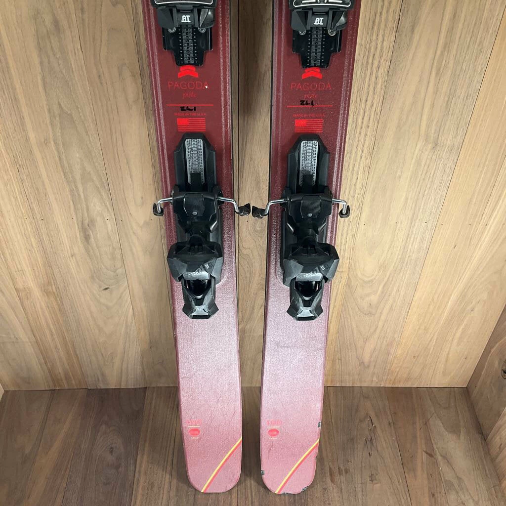 The DPS Pagoda Piste 100 C2 Skis are a fantastic ski for finding powder stashes without sacrificing reliability on groomers or through chop. A longer effective edge than the Resort Pow models offer additional edge hold for blasting down the frontside. A dual wood core keeps things lightweight and damp, while a carbon sheet stiffens up the ski without adding unneeded weight. Comes pre-mounted with Tyrolia Attack 13 Demo Bindings and are ready for the slopes! Used – Good Condition! Dimensions: ( 132 / 100 / 115 ) Turning Radius: 19m