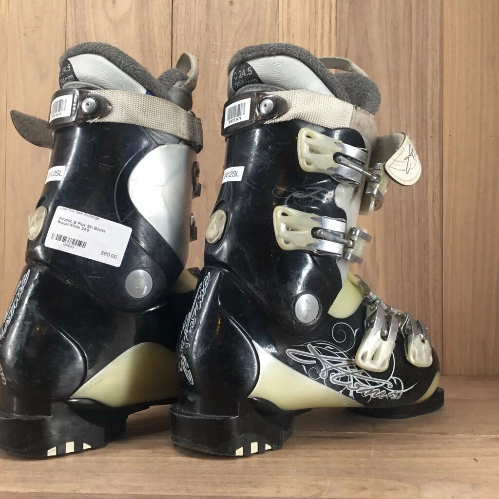 SKU: ski-boots-6677935718484 Categories: Ski, Ski Boots, Winter Gear Tags: 24.5, Atomic, Black/White, Height: 21, SKI BOOTS, Used, Width: 15.5, Women