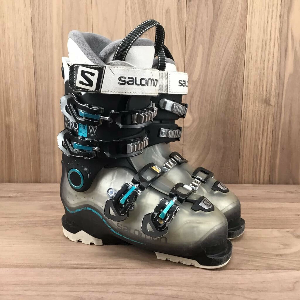 SKU: ski-boots-6687343050836 Categories: Ski, Ski Boots, Winter Gear Tags: 23.5, Depth: 5, Grey, Lone Pine Gear Exchange, Salomon, SKI BOOTS, Used, Width: 21
